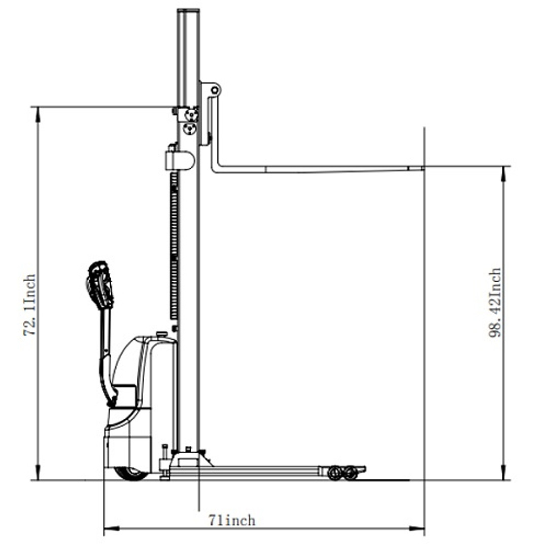 The EKKO EB12E-98Li LITHIUM IRON PHOSPHATE Electric Straddle Stacker with a 72″ lowered mast can get underneath any doorway and is designed with the combination of the versatility of a forklift, reach truck and a walkie stacker. It is ideal for loading and unloading trucks, loading docks, stock rooms, manufacturing floors and warehousing. EB12E-98Li are made from high quality steel and components with durable quality drives to withstand any terrain, usage, impact and directional changes for the use of any application with confidence and assurance.